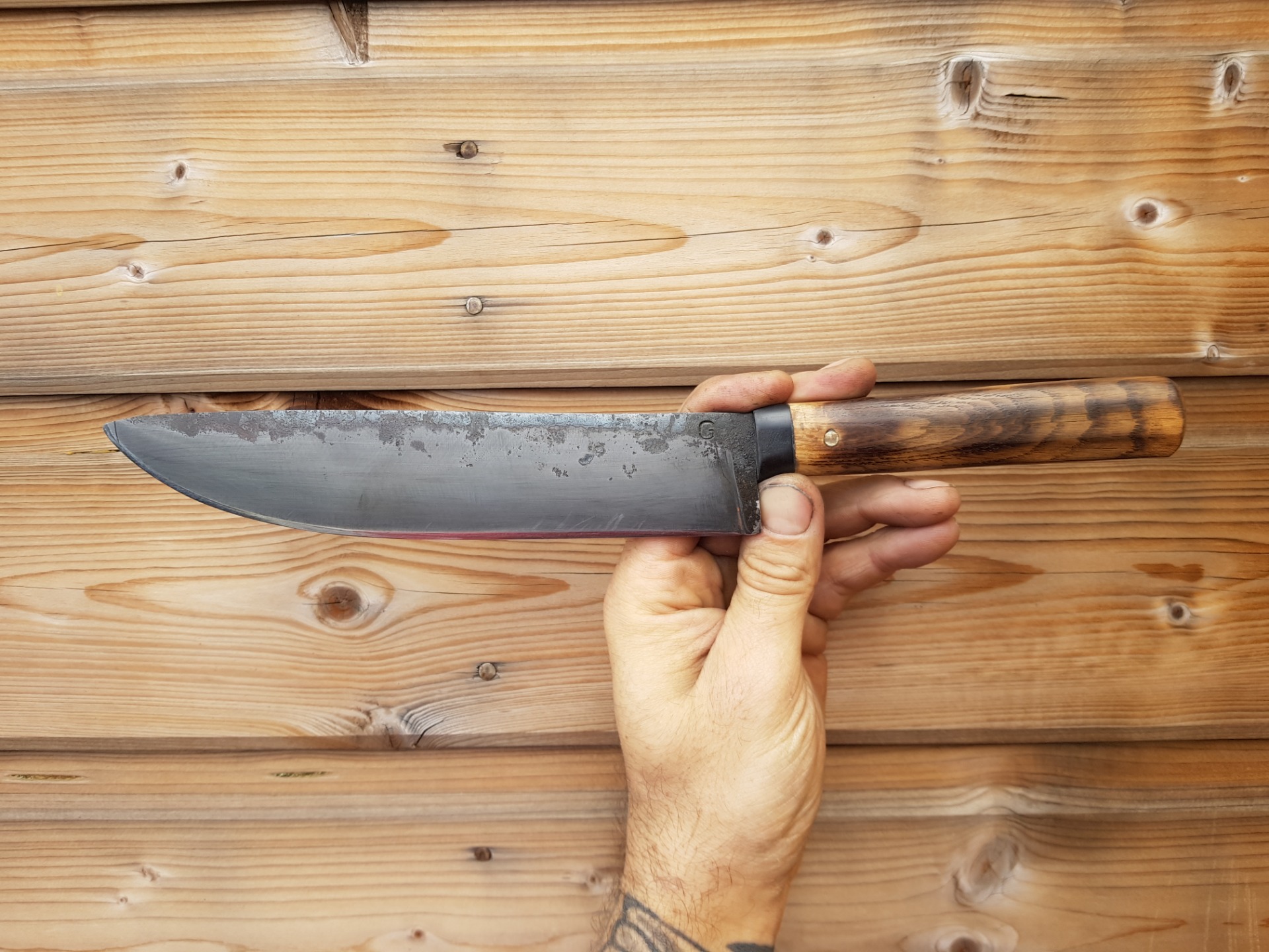 lame forgée dans une vielle lime manche en chêne mitraillé