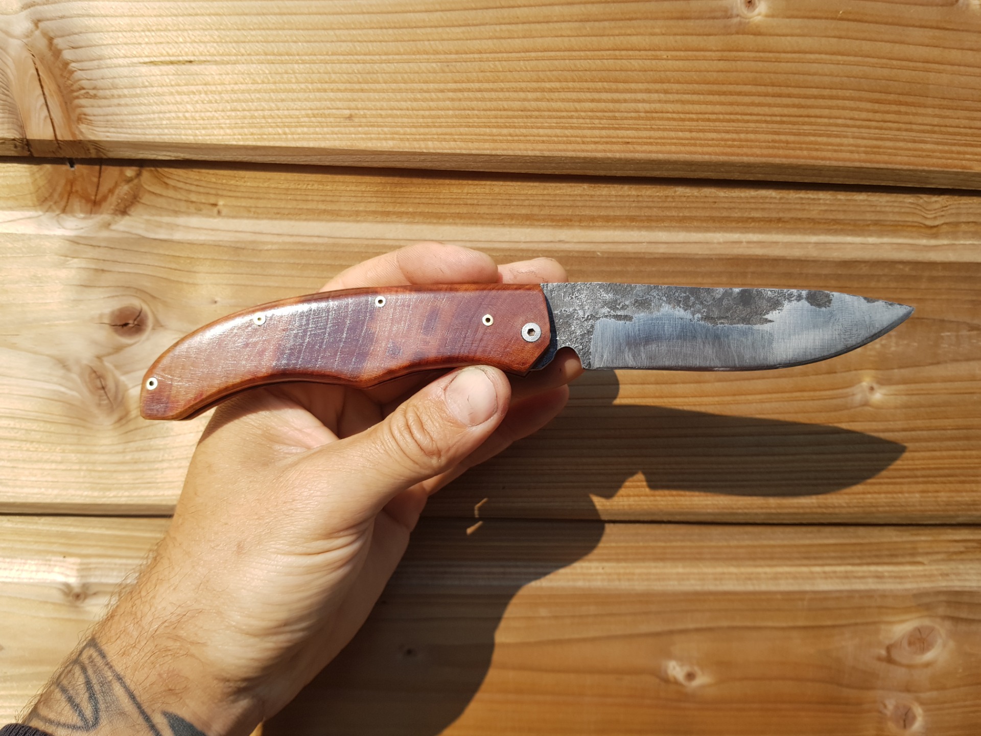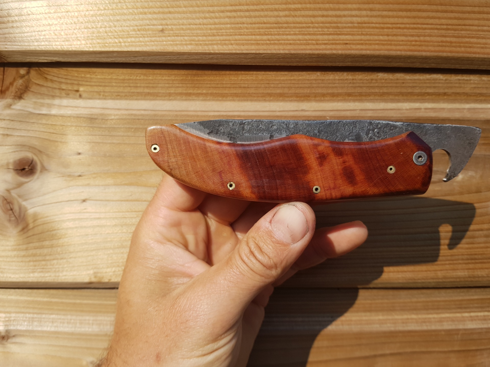 lame forgée en acier 100cr6 l'arrière de la lame fait office de décapsuleur manche en quetchier